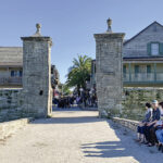 The starting point is the main entrance to the old city, where two columns and part of the retaining wall built by the Spanish in front of the Castillo de San Marco military fort still stand.